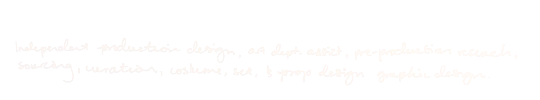 Available for independent production design, art dept. assist, set dressing, pre-production research, sourcing, curation, costume, set, & prop design, graphic design
